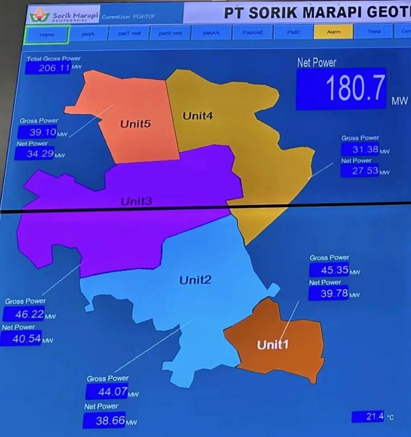 這是重要的里程碑事件,標志著SMGP地熱電站進入到"200兆瓦俱樂部”。在全球地熱界,發電功率超過200兆瓦的電站(定義為發電設備生產的電力,外售電量還需要扣除電站運行自耗功)寥寥無幾,SMGP地熱電站這座采用開山擁有完全自主知識產權的模塊電站,勢將成為全球地熱界的“明星”,也是蘇門答臘最主要的地熱電站。